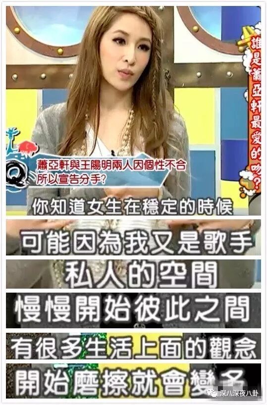 萧姐之前上康熙,还帮王阳明澄清过。当时的舆论就都在说因为王阳明劈腿导致两人分手,萧姐说噢不是的呢,只是因为两人性格不合,我喜静,他爱动,加上住在一起后摩擦增多,这才分开的,无关第三者哦。