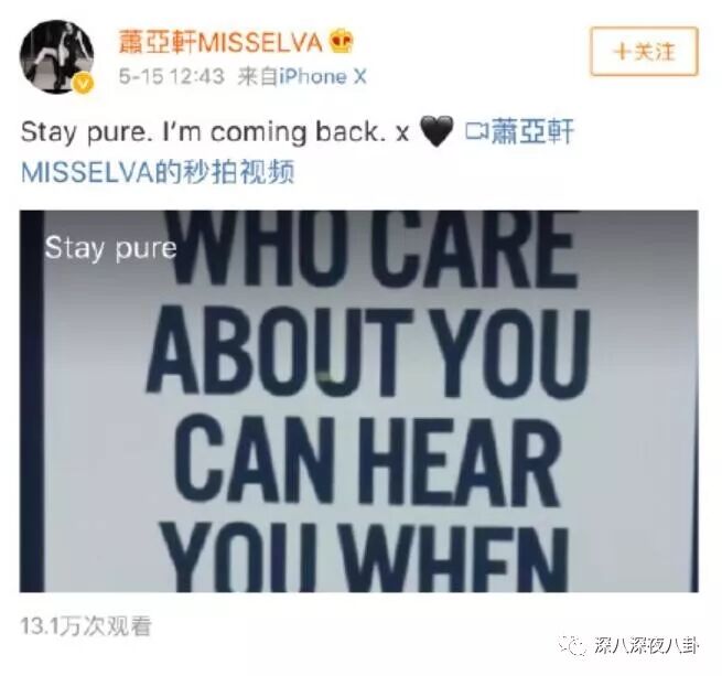 得了怪病好几个月后,上个月萧亚轩发了一条微博,说即将back,说明病情已无大碍咯,网友也都替她高兴。