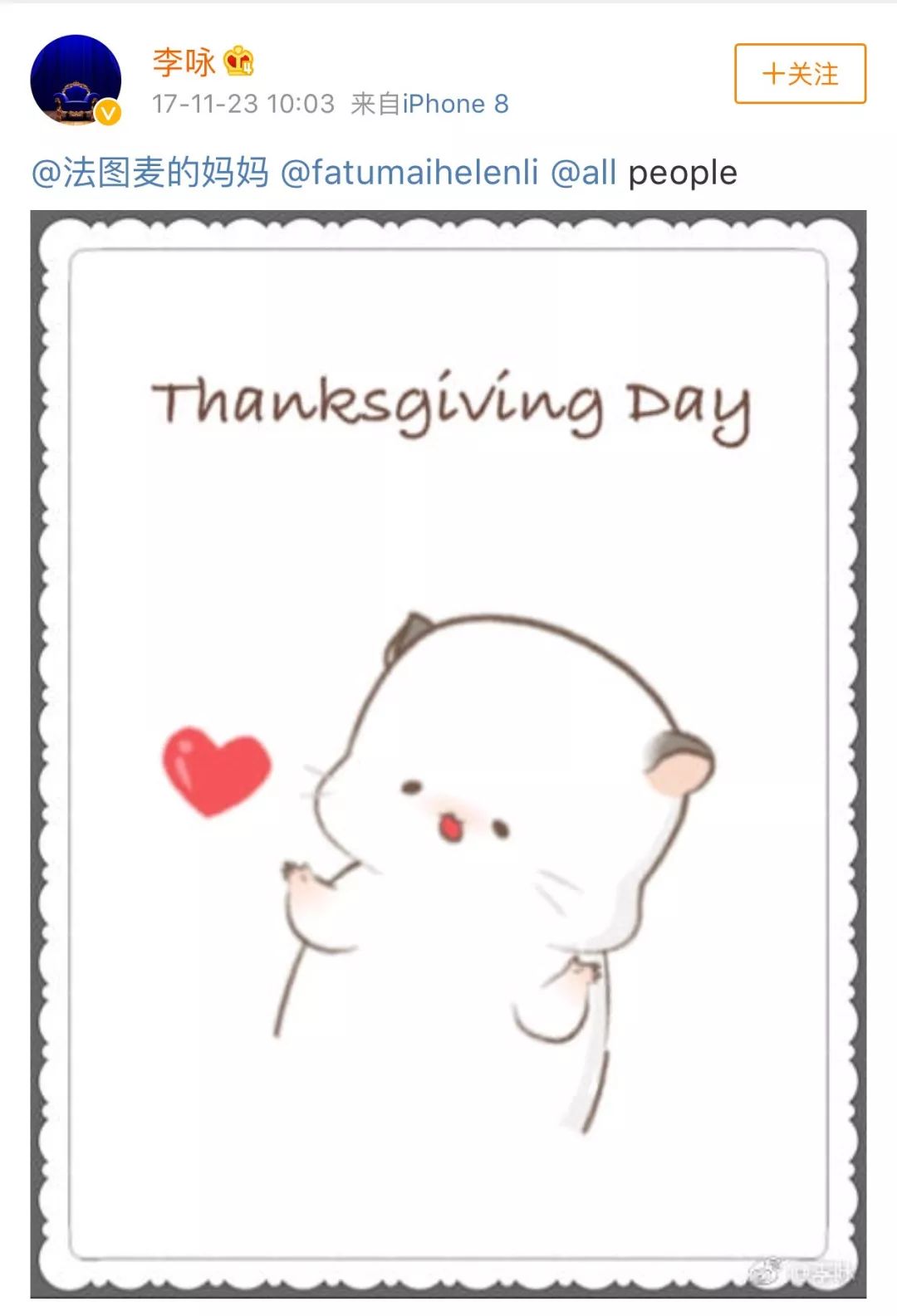 李咏生前最后一条微博定格2017年11月23日:感恩家人,感恩所有人。