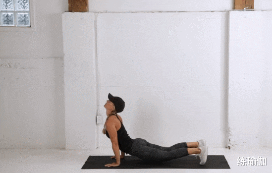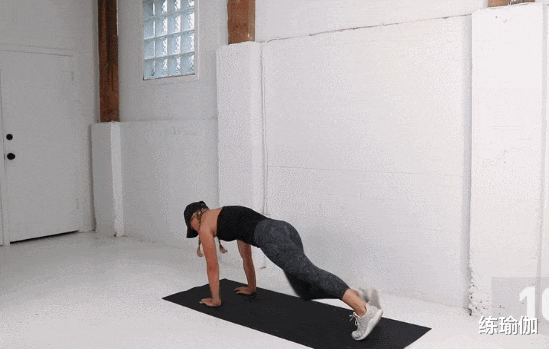 练习过程中,时刻注意核心收紧,背部保持挺直,双手放在肩膀下,双脚后推。