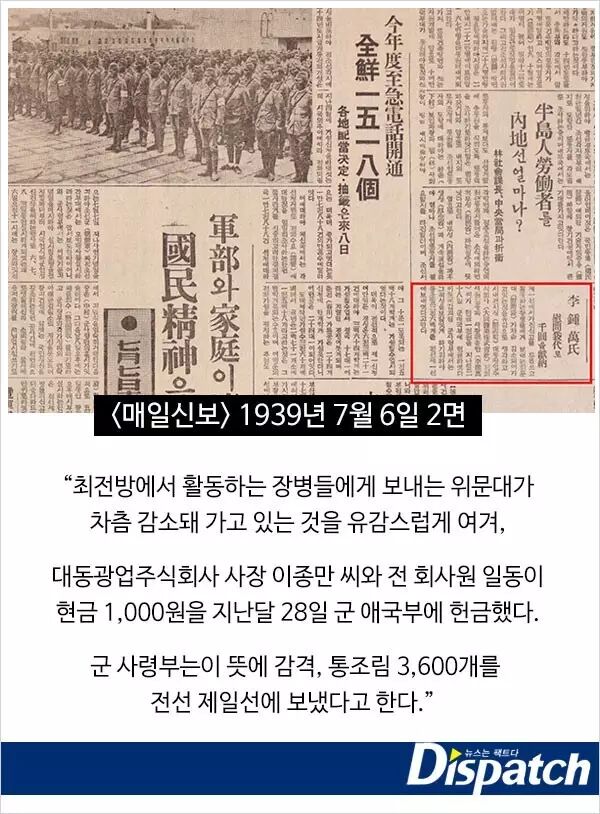 而根据资料显示,李钟万在日本侵占朝鲜时期经营矿产,又被称为“金矿王”。在亲日人员名字典上被记载为一等亲日派。为慰安妇创设和维持提供资金支持,以此换取采掘权发家致富,向日本上供战争资金。
