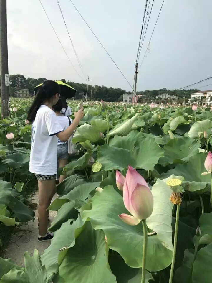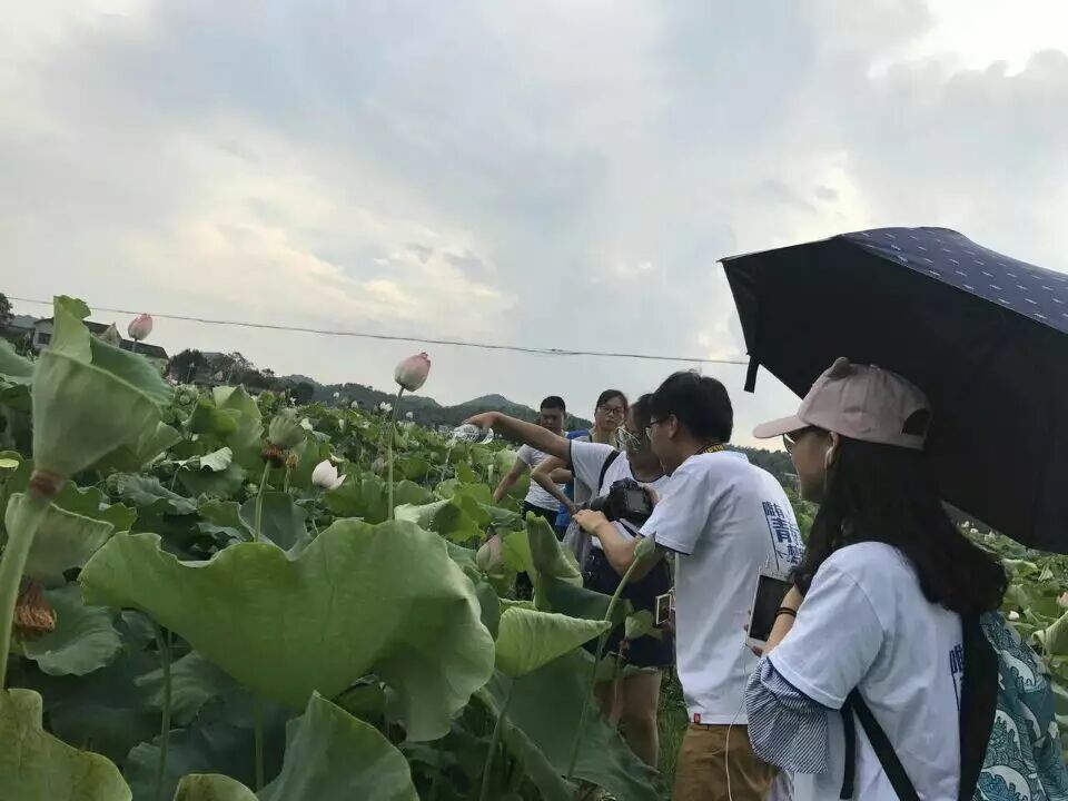 随后,全体学员来到枫林镇金桥村荷花里,体验乡村旅游特色美景。正值盛花期,荷叶接天望不尽一片碧绿,阳光下的荷花分外艳丽鲜红,沿途风景美不胜收。