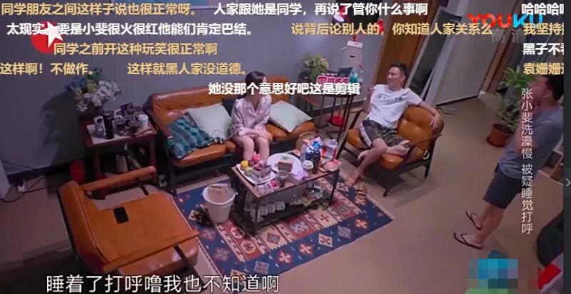说张小斐洗澡很慢,又问两个男的:“张小斐真的打呼噜吗?”