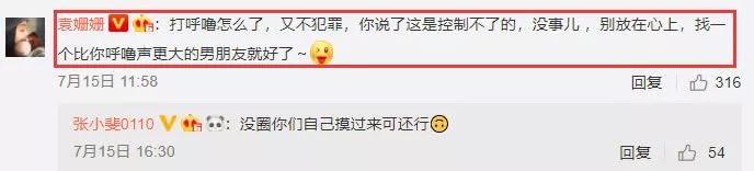 袁姗姗竟然不知趣跑来评论,打呼噜没什么,找个比你声大的男朋友就好了。