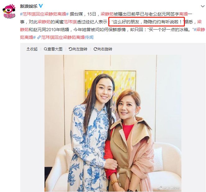 其实梁静茹还挺低调处理的,家丑不可外扬,更何况是公众人物,但备不住身边有个好闺蜜范玮琪,昨天刚有媒体发梁静茹离婚的事儿,下面评论全是cue范玮琪的。