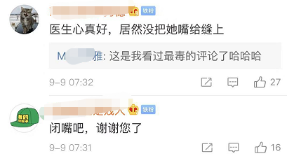 缝了十五针感觉还挺严重的,结果下面评论南风真看笑了:摔跤冠军\这是神的旨意你可赶紧闭嘴吧\快别让她说话了\老天都想让她闭嘴\医生心真好,居然没把她嘴给缝上…