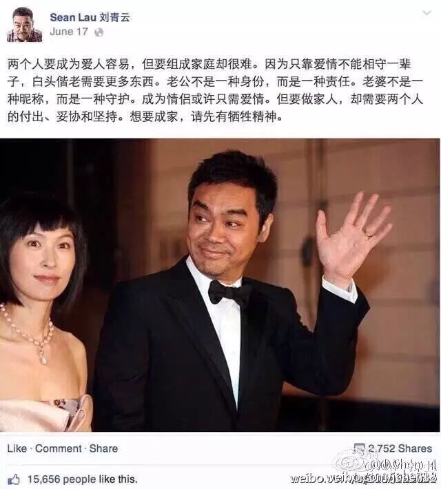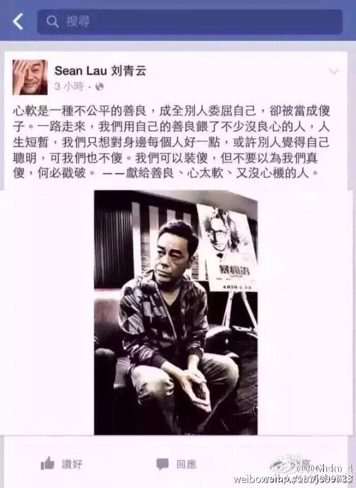 在Facebook上有一个名为“Sean Lau 刘青云”的ID,经常发表一些感性的语录,这些语录后来都流进了微博,被网友纷纷转载。但事实上,那些语录并非刘青云本人所写。