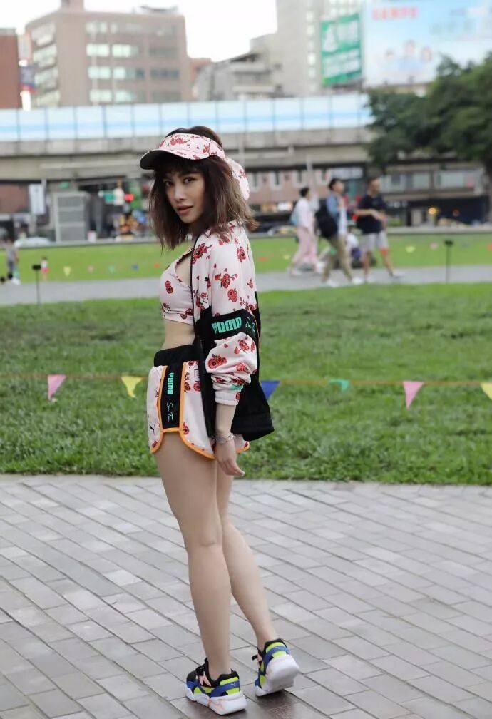 徐怀钰的头上还戴着一个粉红色的发带,正好和她穿的这一套衣服是同款的设计,不得不承认徐怀钰的身材保持的是相当不错的,肯定平时会对自己的身材进行一定的管理,而且脚上穿的还是一双运动鞋,整体的效果还是不错的!
