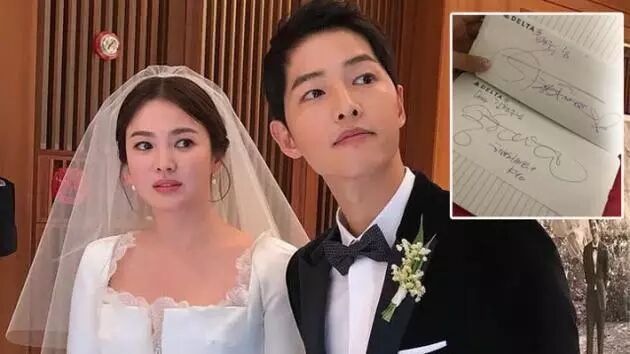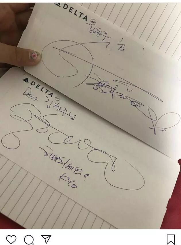 近日,有一名网友在网上晒出了宋慧乔和宋仲基的签名照,该网友是一名空姐,在飞机上偶遇了宋慧乔宋仲基夫妇,于是向其要了签名照,该网友表示自己很幸运能获得双宋的签名。引得不少粉丝表示羡慕嫉妒恨。