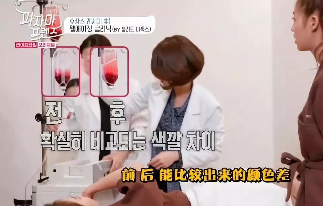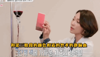 节目中医生对宋智孝说,她抽出来的血液是暗红的,这是因为身体过于疲劳导致的血液不健康,还说,颜色鲜红才是健康症状。