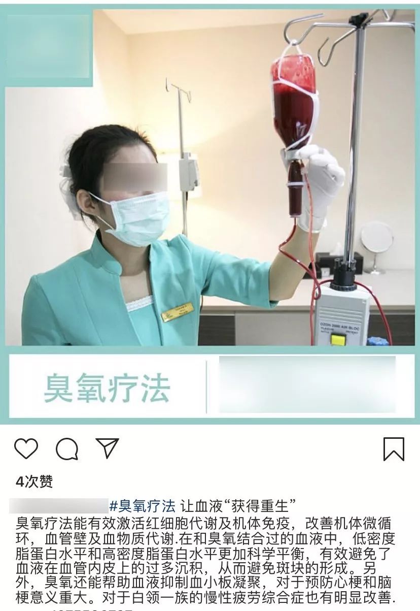 听起来似乎没什么毛病,但重点是,用针管直接在血袋里注入臭氧,非常不安全,在临床上的疗效也充满不确定性。