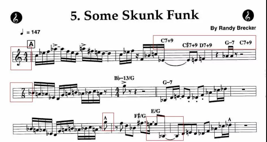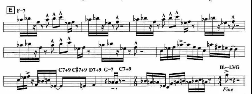 即兴段:固定的段落和和声32小节,乘以 X个乐手,乘以 N(意思是段落和和声这32小节是不变的,每个乐手都可以在这上面即兴N多遍,多少遍看演奏者安排,有时是随机,但是32小节的段落是固定的,换人或者结束即兴都以这个为单位,偶尔鼓手solo除外)