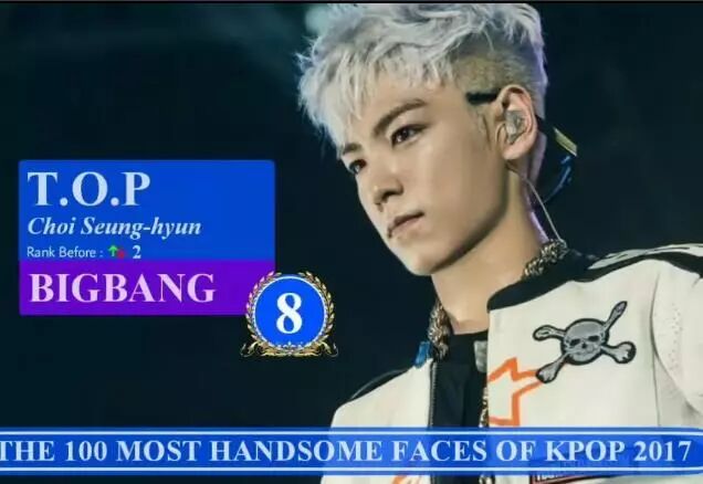 在推特上有个投票是“The 100 Most Handsome Faces of Kpop 2017”,简单来说就是2017年最帅的男明星排名。