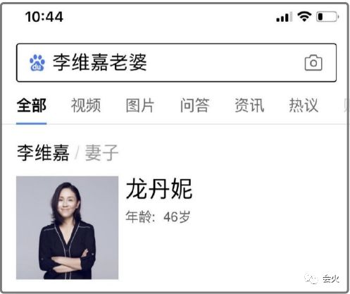在这位网友发的帖子里面,他带上了百度百科给到的关于李维嘉和龙丹妮关系的图片。图片中显示在百度搜索李维嘉老婆,出现的关联人是龙丹妮。