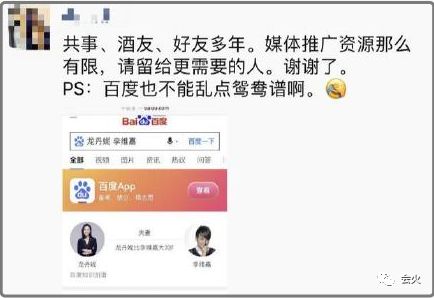 龙丹妮也在个人微信朋友圈发文:“共事、酒友、好友多年。媒体推广资源那么有限,请留给更需要的人,谢谢了。”否认了结婚传闻,还不忘点名批评百度不要乱点鸳鸯谱。