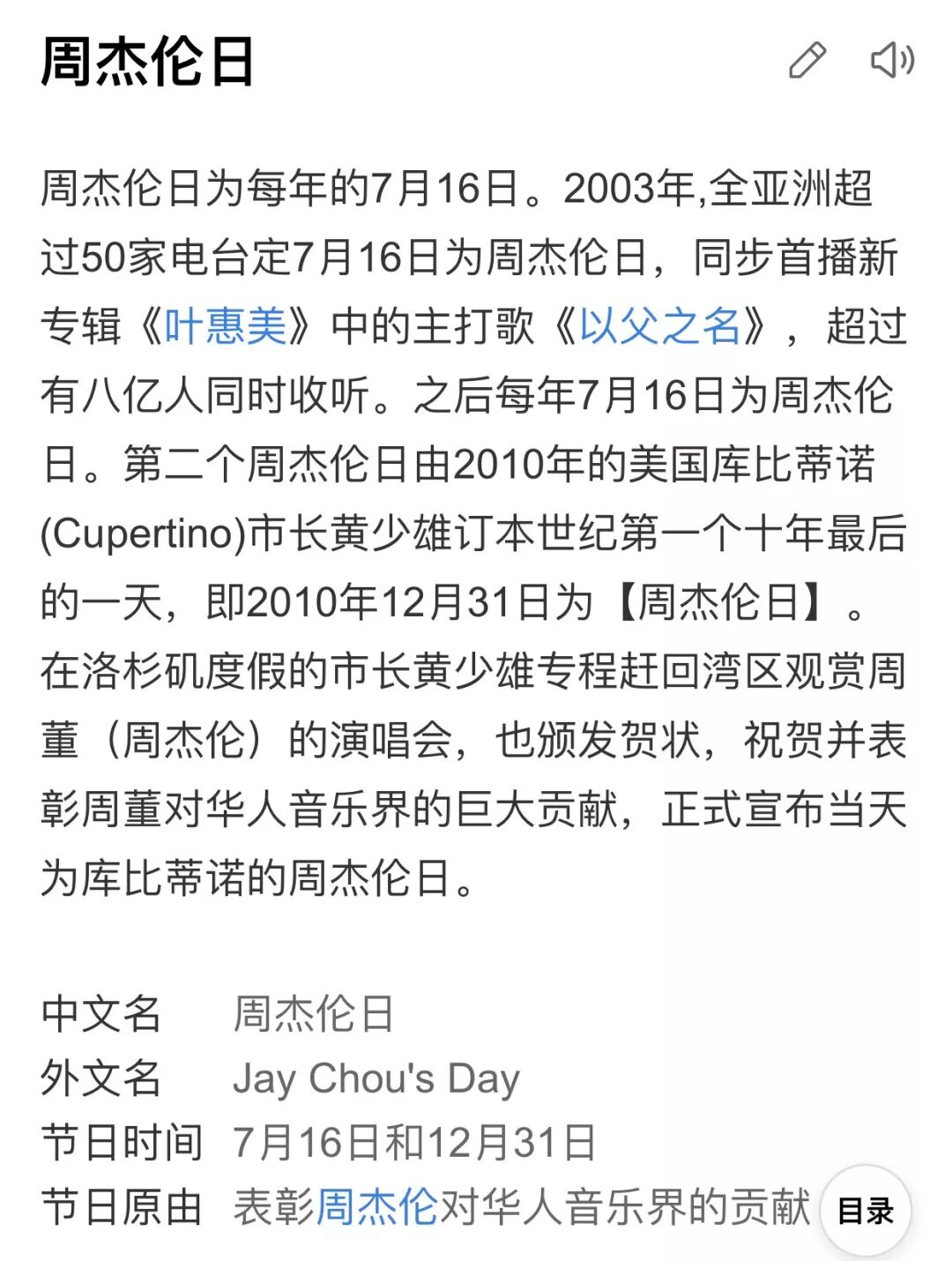 并且每年的7月16日,还被为“周杰伦日“,以表彰周杰伦对华人音乐界的贡献。