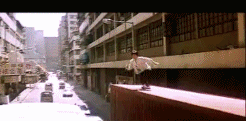 要知道,上世纪的港式武打电影,就算在最辉煌的时候也多是小成本B级片。为了节省成本,往下跳不能用大气垫,是把苹果箱子堆在一起,上面铺几层床垫。