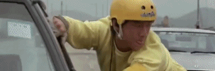 《警察故事》里,巴士狂奔结束后一头撞到玻璃中,撞得皮开肉绽,都露出了骨头——
