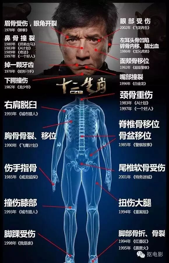 所有的一切都是他从全球无数影迷手中赢回来的,代价就是全身骨头都断过。