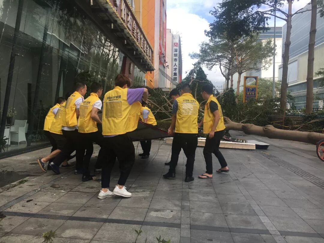在这片台风过后的狼藉中,好百年人也永不缺席,为做好现场和外围恢复工作,在张总动员下,各部门分工协作,对户外倒下的树木和杂物进行清理。还市民一个通畅的道路,还原好百年家居安全舒适的购物环境,大家团结奋战,挥汗如雨,不辞辛苦。