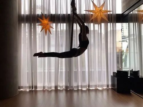 孙娜恩的空中瑜伽主要在伸展身体,强化腿部肌力,以及放松肌肉拉长整体线条,塑造完美体态,同时利用空中倒立强化新陈代谢,释放身体压力。不过在经期间记得要暂停倒立动作,以免骨盆腔严重充血。