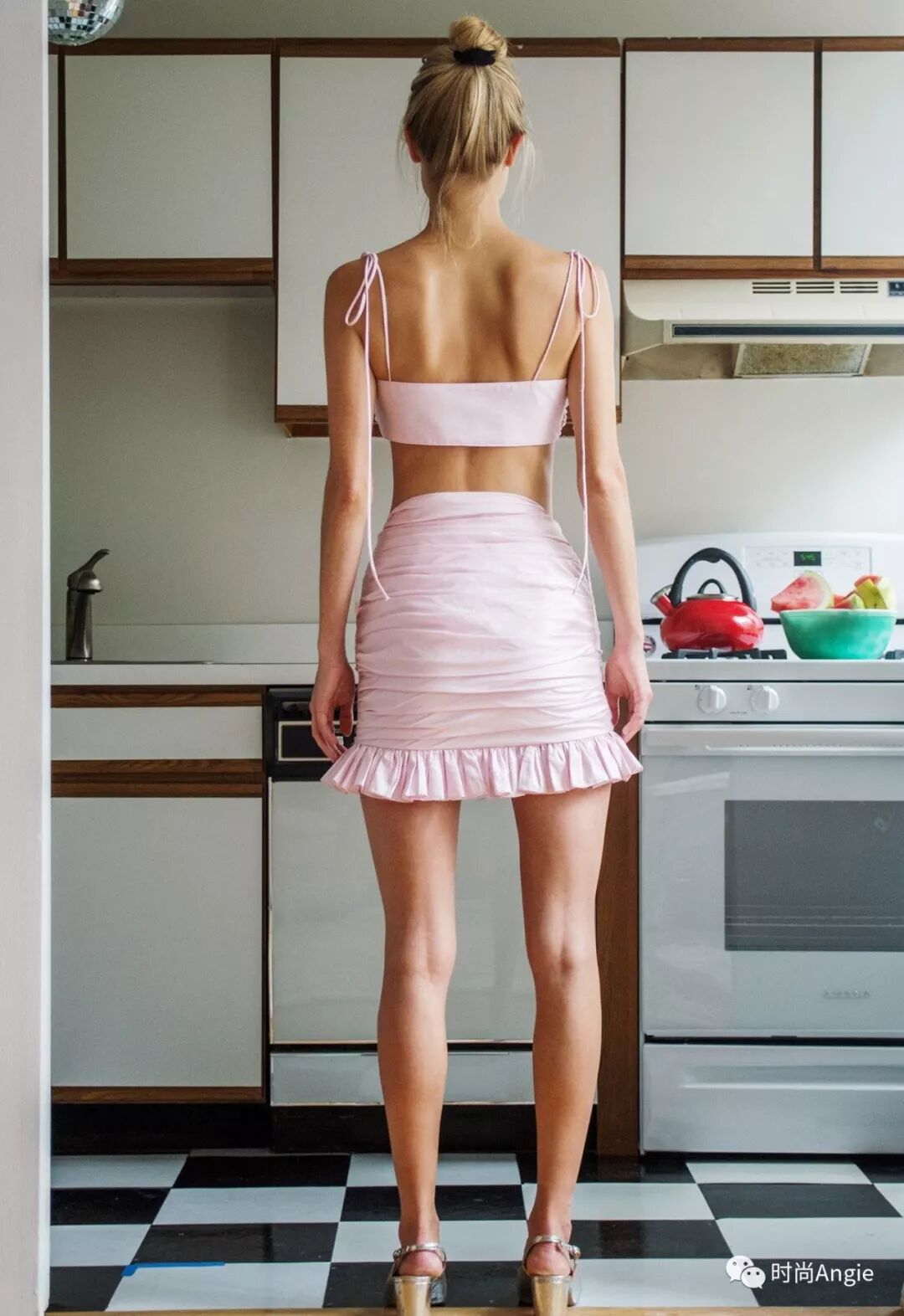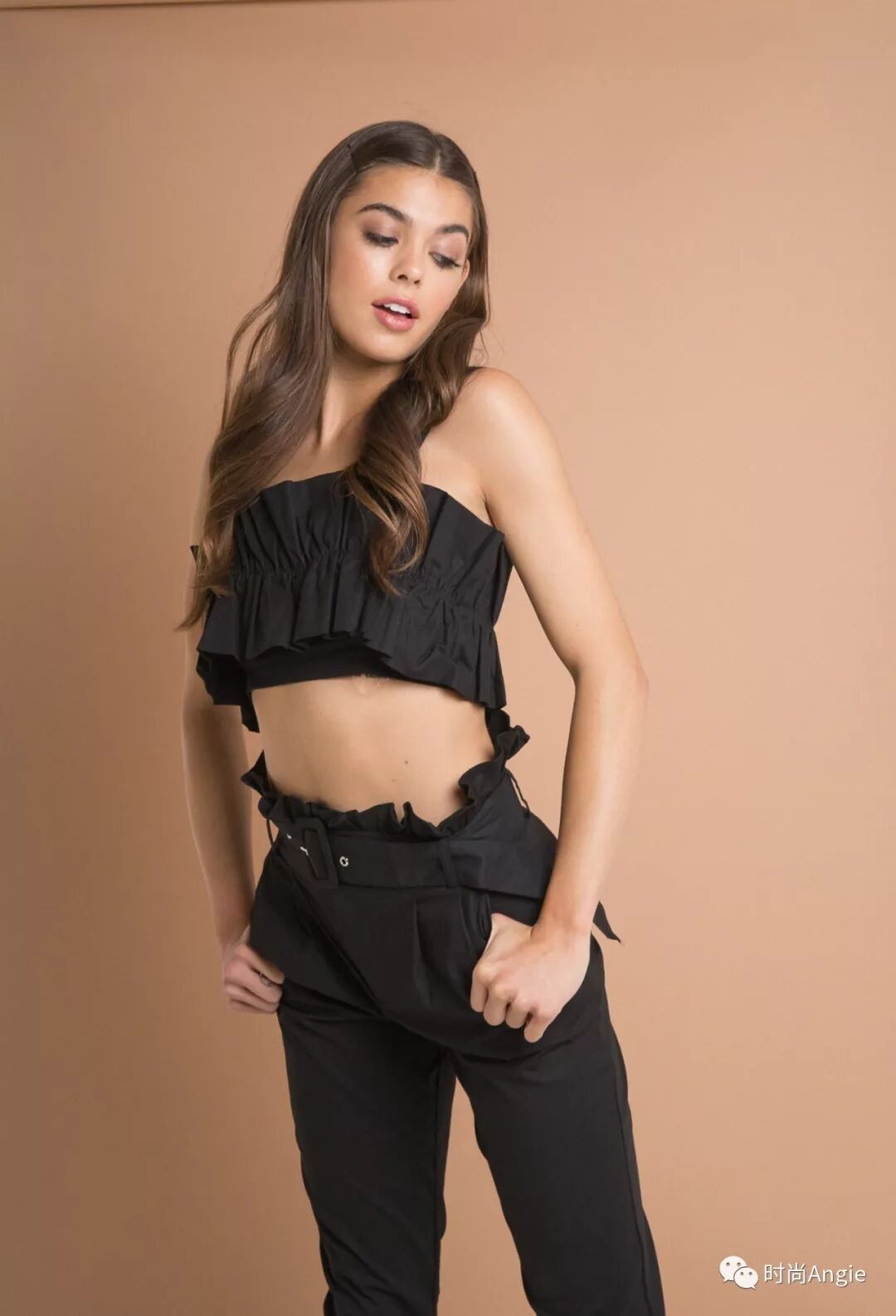 Olivia这一身出自bree layne。 上衣既可以像Olivia这样把绑带的一面穿在前面也可以像模特一样反过来穿。