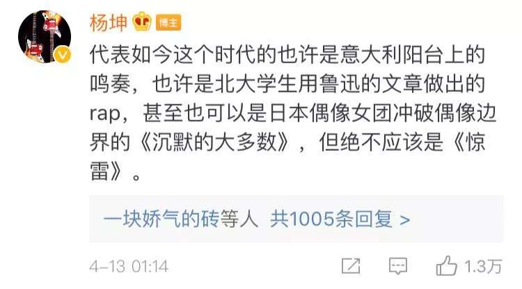 杨坤称《惊雷》“神马东西”,你怎么看?