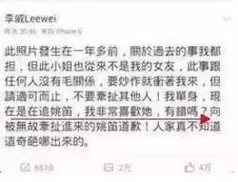 李威估计当时是真的太爱姚笛,马上挺身而出维护她,还放话说:要炒作就冲我来,但请适可而止……我单身,现在是在追姚笛……向被无辜牵扯进来的姚笛道歉!