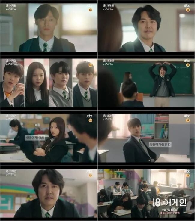 JTBC 全新月火剧《回到18岁》(18 Again/每周一、二播出)又公开了第二版的全新概念预告,37岁尹相铉的灵魂搭配18岁李到晛的身体,回头重新再念一次高中,会是什么样的感受呢?