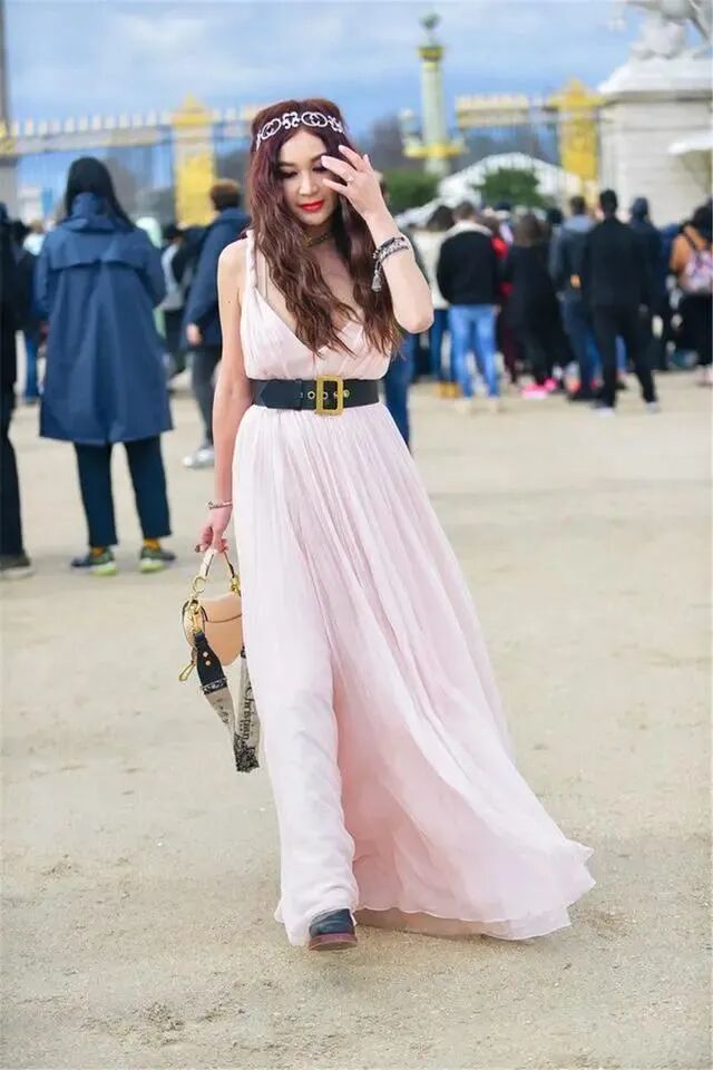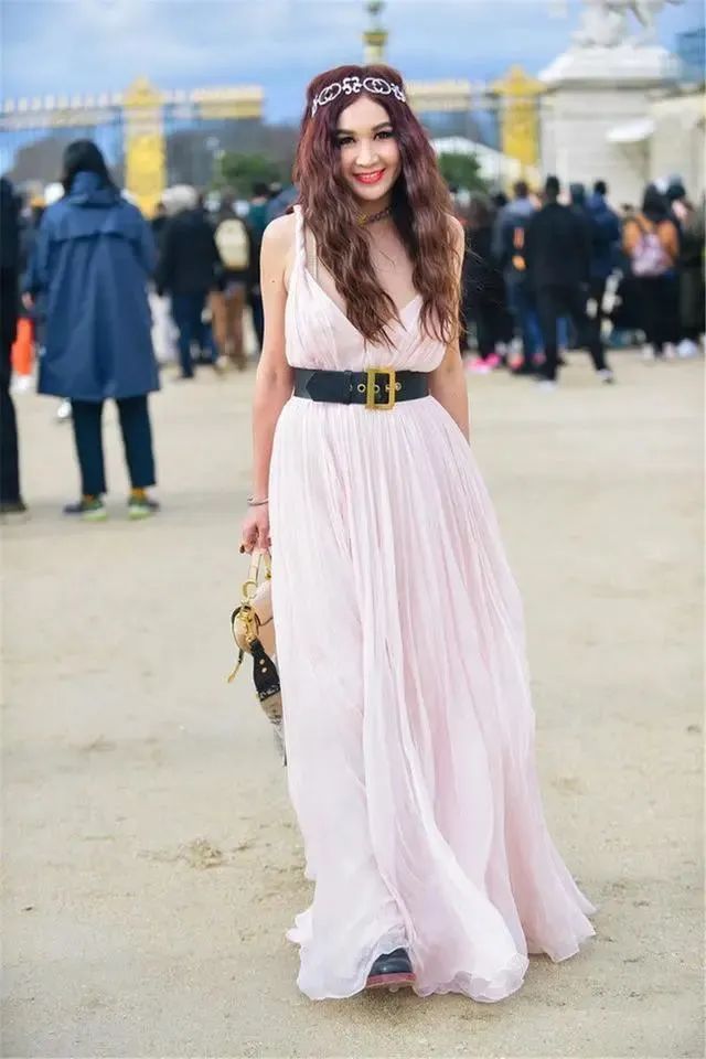 温碧霞还真的是把自己当做一个18岁的少女来打扮了呢,穿着一件粉色的吊带裙实在是太嫩了。可惜的是脸早就像是一个大妈一样,实在是非常的显老气的。这样看起来就会觉得特别的假了。