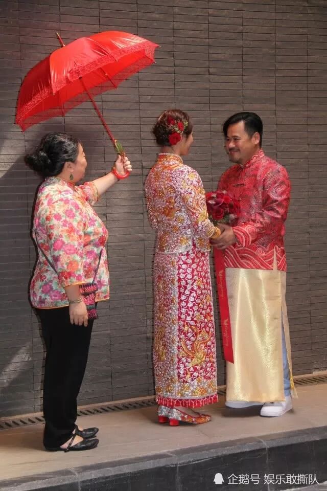 此次举行婚礼,韦家雄的仪式感非常强,在婚礼前一晚,他穿上了全套红色睡衣,还找来专门的大姐为他“梳妆”,一边梳头一边说吉利话。