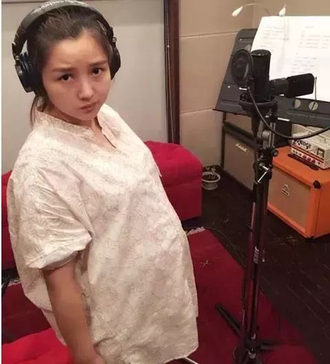 甚至在怀着宝妹8个月的时候,还在辛苦地录制音乐。