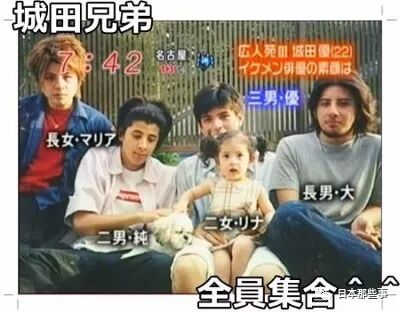 长男(右下角)和长女(左二)和城田优及妹妹岁数相差比较大,不过可以看出轮廓也是城田家特有的高鼻梁混血样。