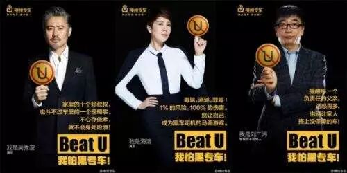 此外,还有实力相差不多的行业巨头间的互撕,这种就会比较不留情面了,直攻对方的死穴,比如神州专车针对UBER推出的“黑专车”策划。