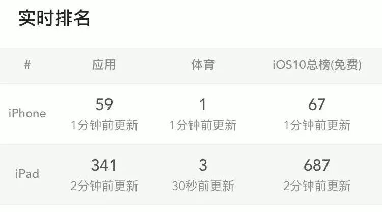 2.虎扑APP排名飙升,由常年徘徊的七八百名,跃升至ios应用免费榜单总榜前60,体育分榜第1名。