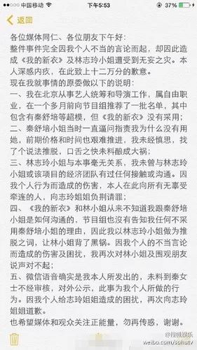 被秦舒培“点名批评”之后呢,Lisa就自己乖乖出来发微博道歉了。