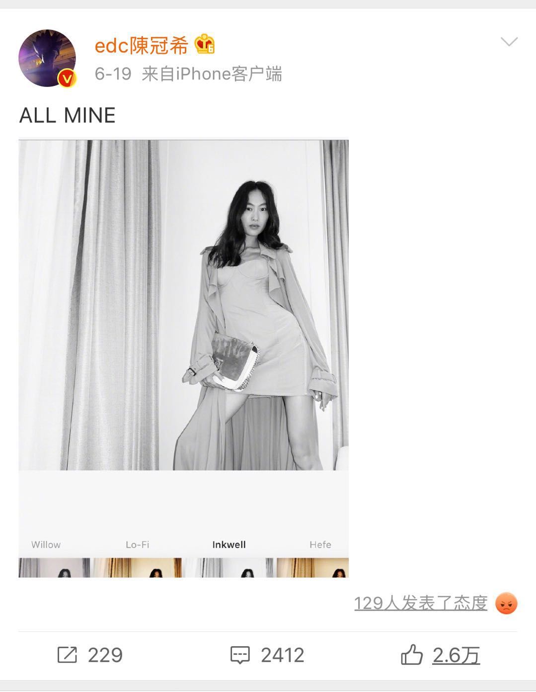 最近大姨发现哦,陈冠希在社交媒体上秀恩爱的次数越来越多了。前几天,他在微博上po了一张秦舒培的图,配文“All mine”。