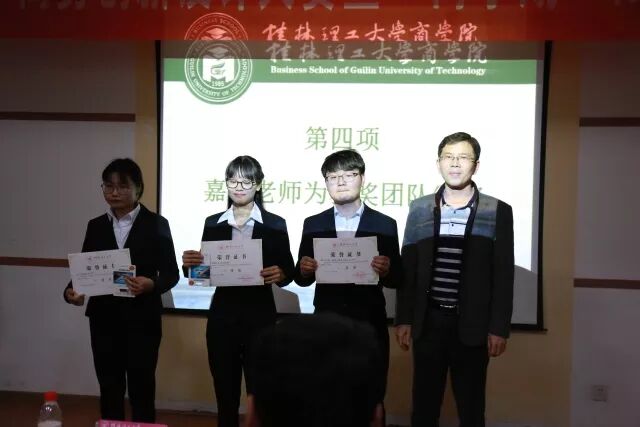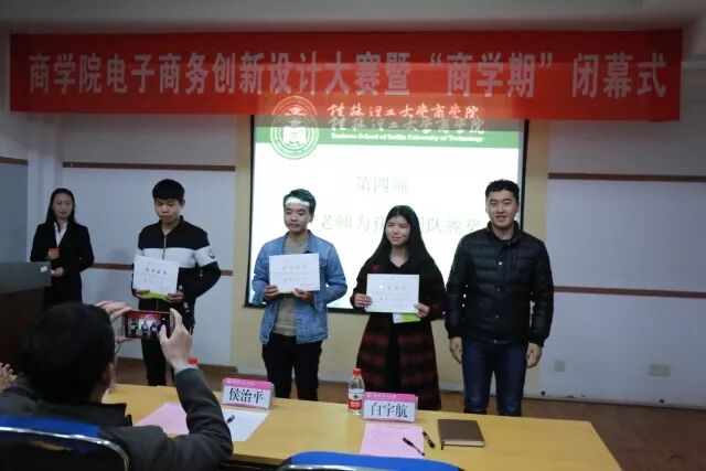 首先由侯治平老师为获得电子商务创新设计大赛一等奖的团队颁奖