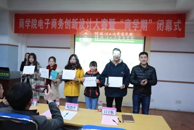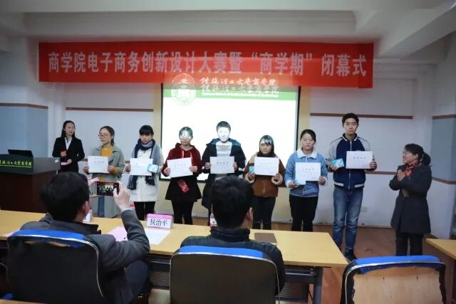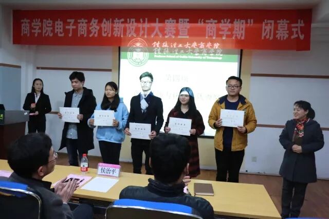 为了进一步提高同学们的积极性、加强我院学子的团队意识和创新意识,营造一个良好的校园文化氛围。2017年12月29日晚由商学院举办的“商学期”系列活动之电子商务创新设计大赛暨第七届“商学期”闭幕式在屏风校区7309教室顺利举行。商学院信息管理教研室侯治平老师、信息管理教研室金立韫老师、团委·学生会指导老师白宇航出席了本次活动。