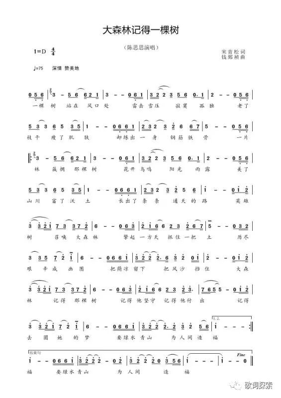 ——歌词《大森林记得一棵树》创作谈