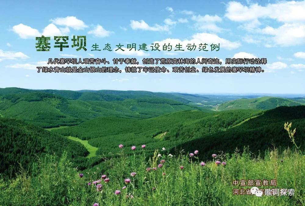 当河北作曲家钱郅祯约我为塞罕坝创作歌词时,我自然由那片茫茫的森林想到那棵曾经孤独的功勋树,它就是一个象征、一个榜样。虽说榜样的力量是无穷的,但是只有一棵树显然是不够的,无论它多么高大、多么顽强,都不无法抵挡茫茫的风沙,只有当他的精神传播开来,营造出无边的森林时,也就是说只有当榜样被学习、被仿效时才会真正成为无穷的力量,所以我们应该树立榜样、更要学习推广榜样才能营造出一种环境、一种气候、一种精神!