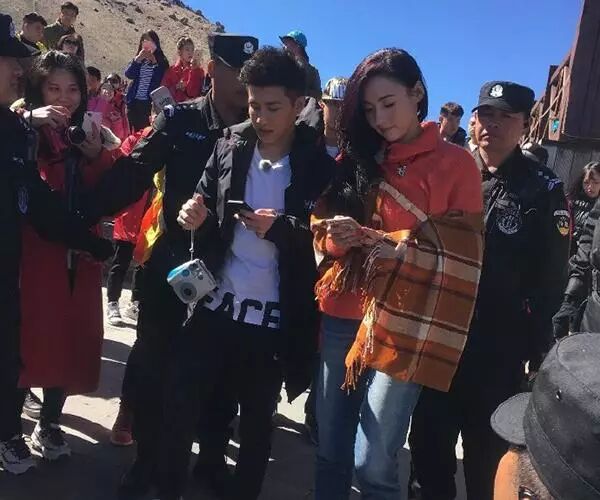 网红小景和气质女神郭碧婷合影,经常被造型师和化妆师联手坑的郭碧婷在路人的镜头里超级美!