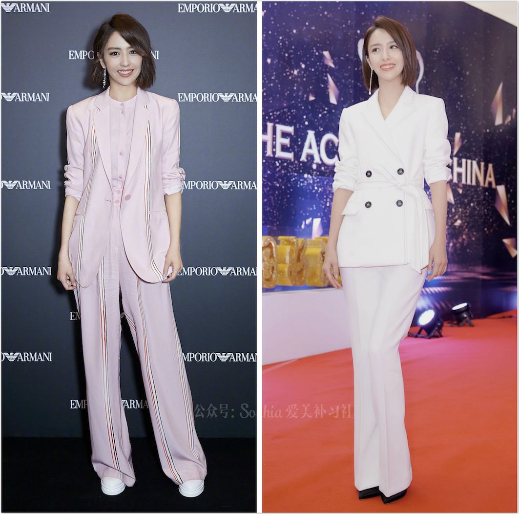 衣服在肩膀一定要有加宽的设计。因此,宽松显气场的小西装,毫无疑问成为了她现在最爱的单品之一啦▼