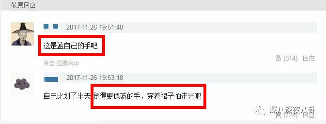 有人说那是蓝盈莹自己的手,为了压住裙子免得走光↓