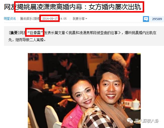 结果2014年一个叫巨春雷的爆料人发出一篇长微博《姚晨和凌潇肃那段被歪曲的往事》,详细讲述了两人离婚的始末,迅速引爆娱乐圈,来了个大!反!转!!