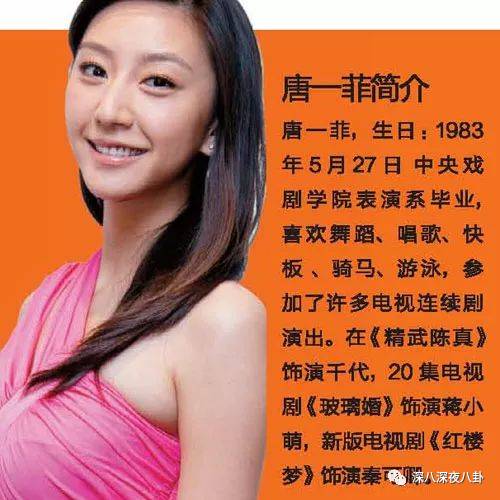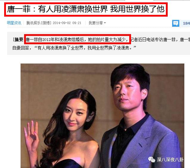 所以当时凌潇肃被骂惨咯,都说是他出轨使婚姻破裂,出轨对象就是后来结婚的这个唐一菲,一个三线小明星↓