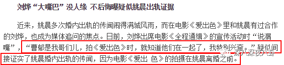 但是姚晨出轨这个事儿嘛,心直口快的刘烨在一次采访中都“说漏嘴”,坐实了姚晨出轨的传言↓