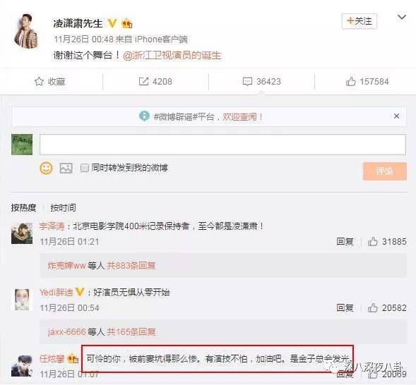 看来是很热心为兄弟打抱不平咯,这次也是说跟凌潇肃喝酒的时候,凌吐露心事,他忍不住把内情发出来