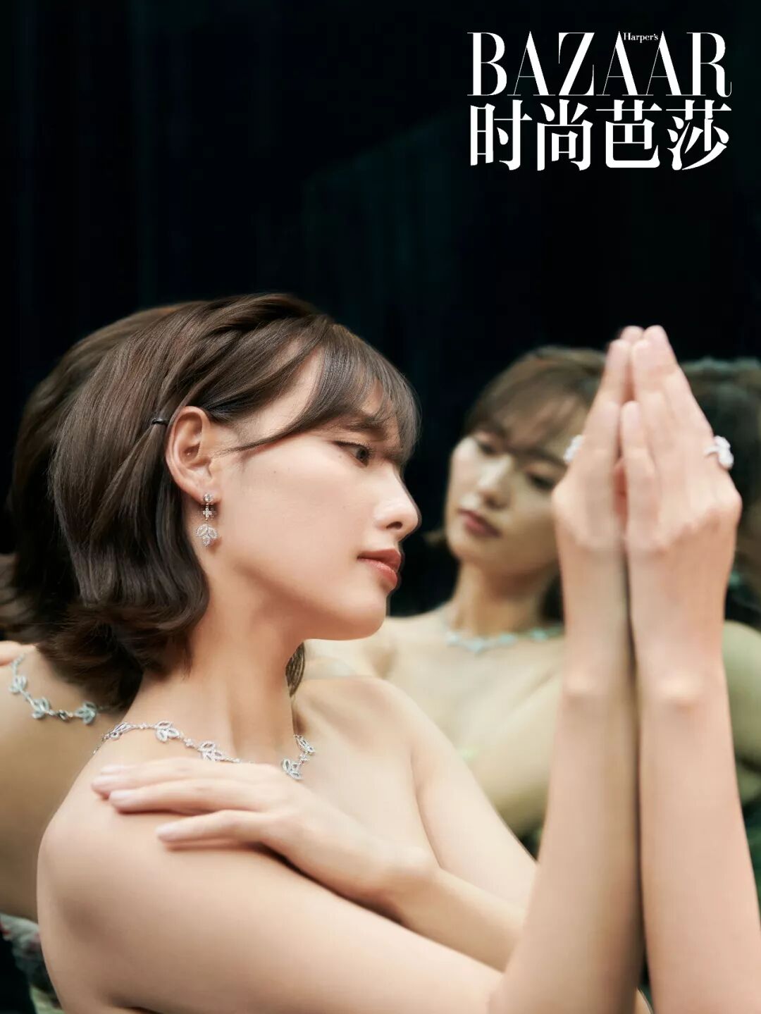 这种美在嘉倪身上尤其突出。她是个性格温婉的成都女孩,又拥有坚信苦尽甘来的韧性。芭莎拍摄头一天,张嘉倪食物中毒去看急诊,当所有人都担心她的健康并以为拍摄会取消的时候,她第二天还是出现在了拍摄现场。柔软,却负责。