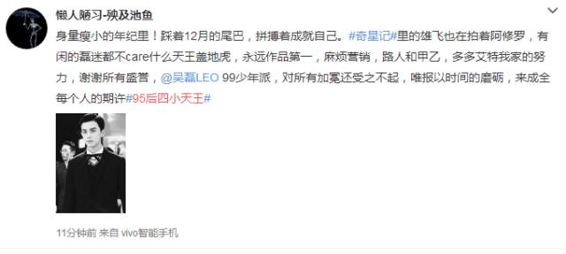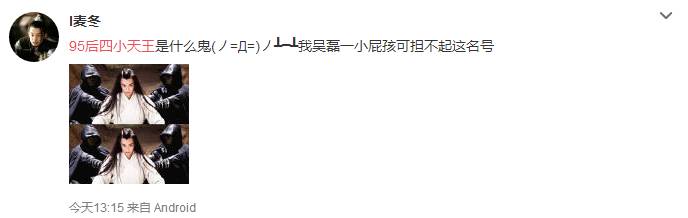 女生的热闹男生也是可以有的,看见热搜上蹦出个四小天王,扒黍这就手贱忍不住了,天王啊,能担起这称呼的人可不多,看看刘德华,黎明等,哪一个不是演艺圈前辈?是圈子里众多艺人尊敬崇拜的对象?那现在这个“95后四小天王”又是个什么来头?